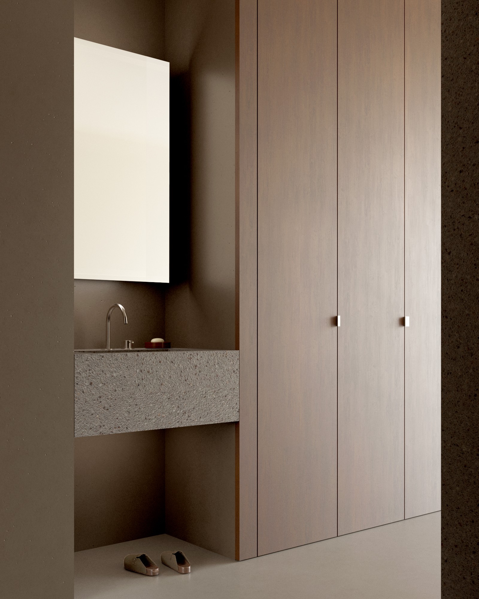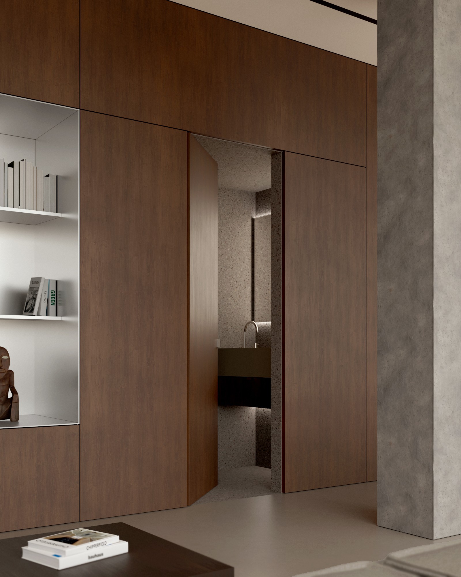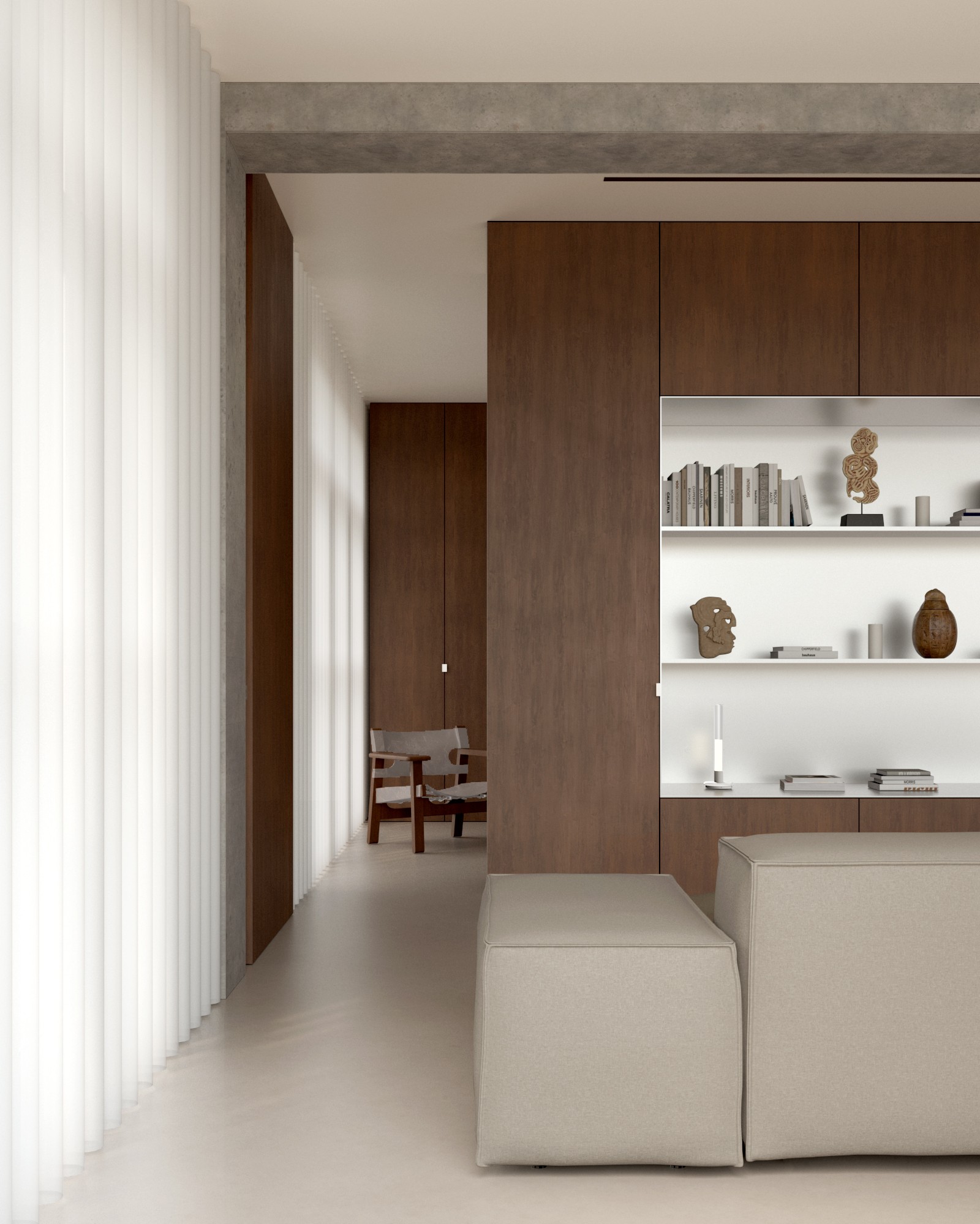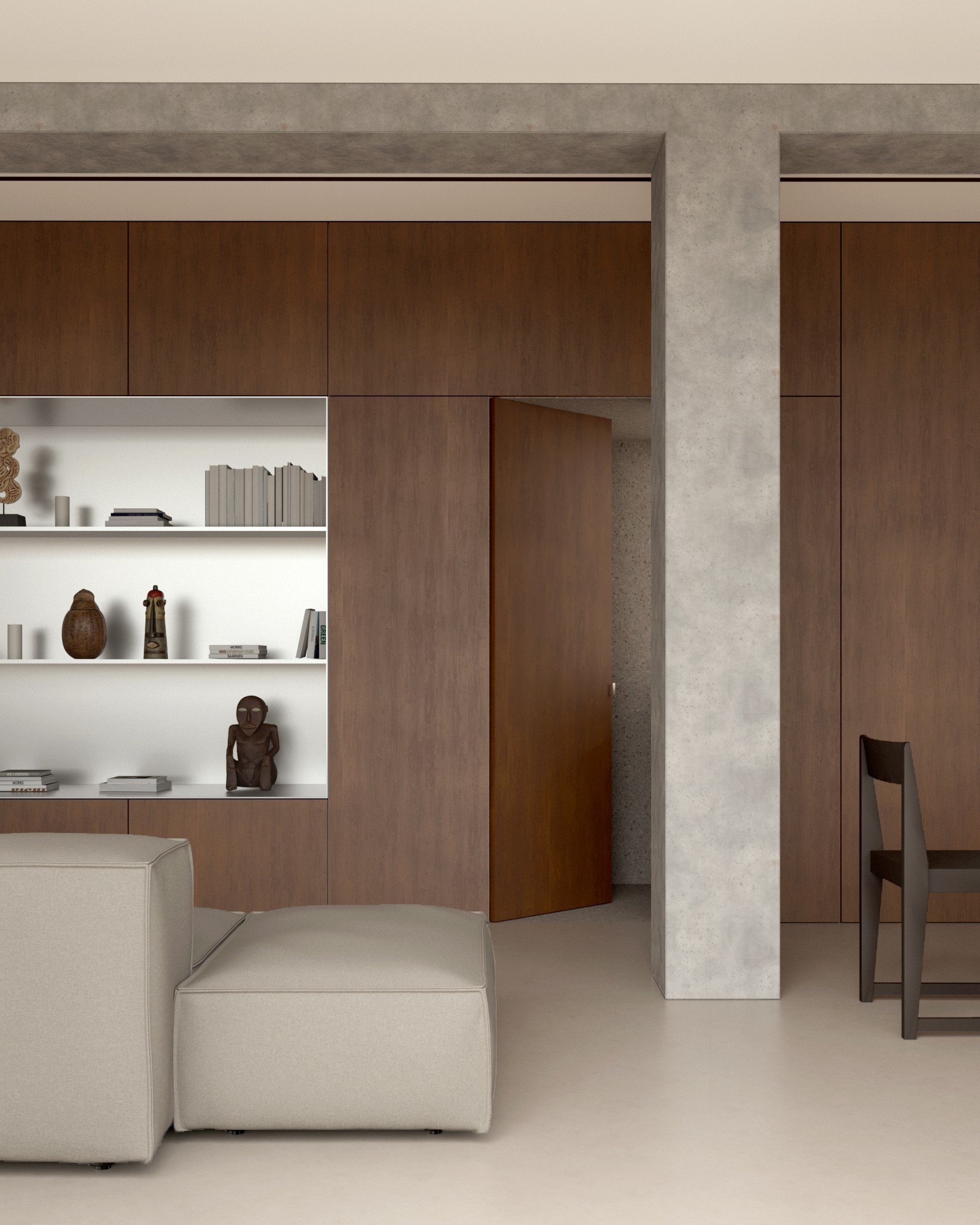 This residential project in Milan arises from the merging of two flats into a single, continuous home. Its curtain-wall envelope provides complete transparency and a direct relationship with the urban landscape.