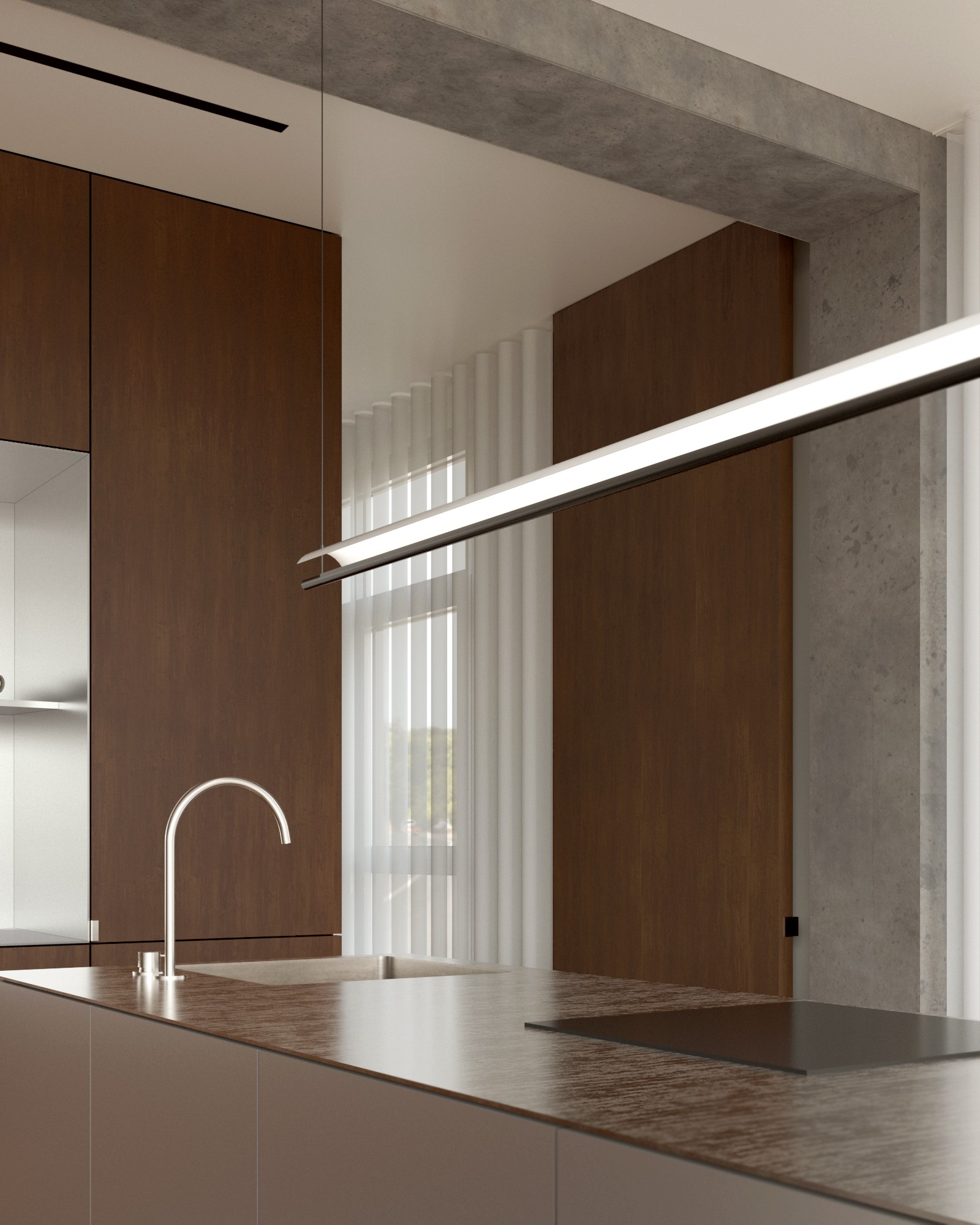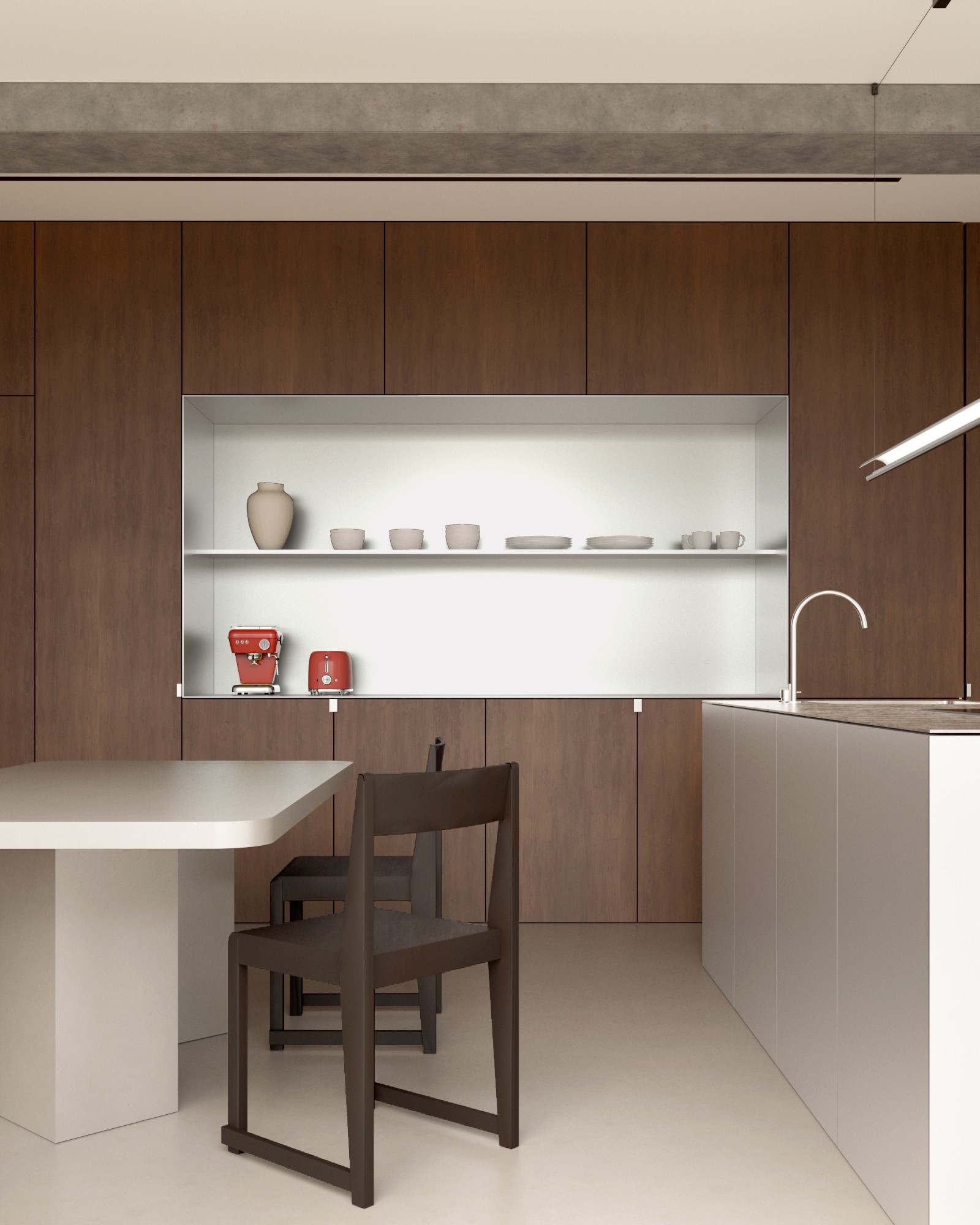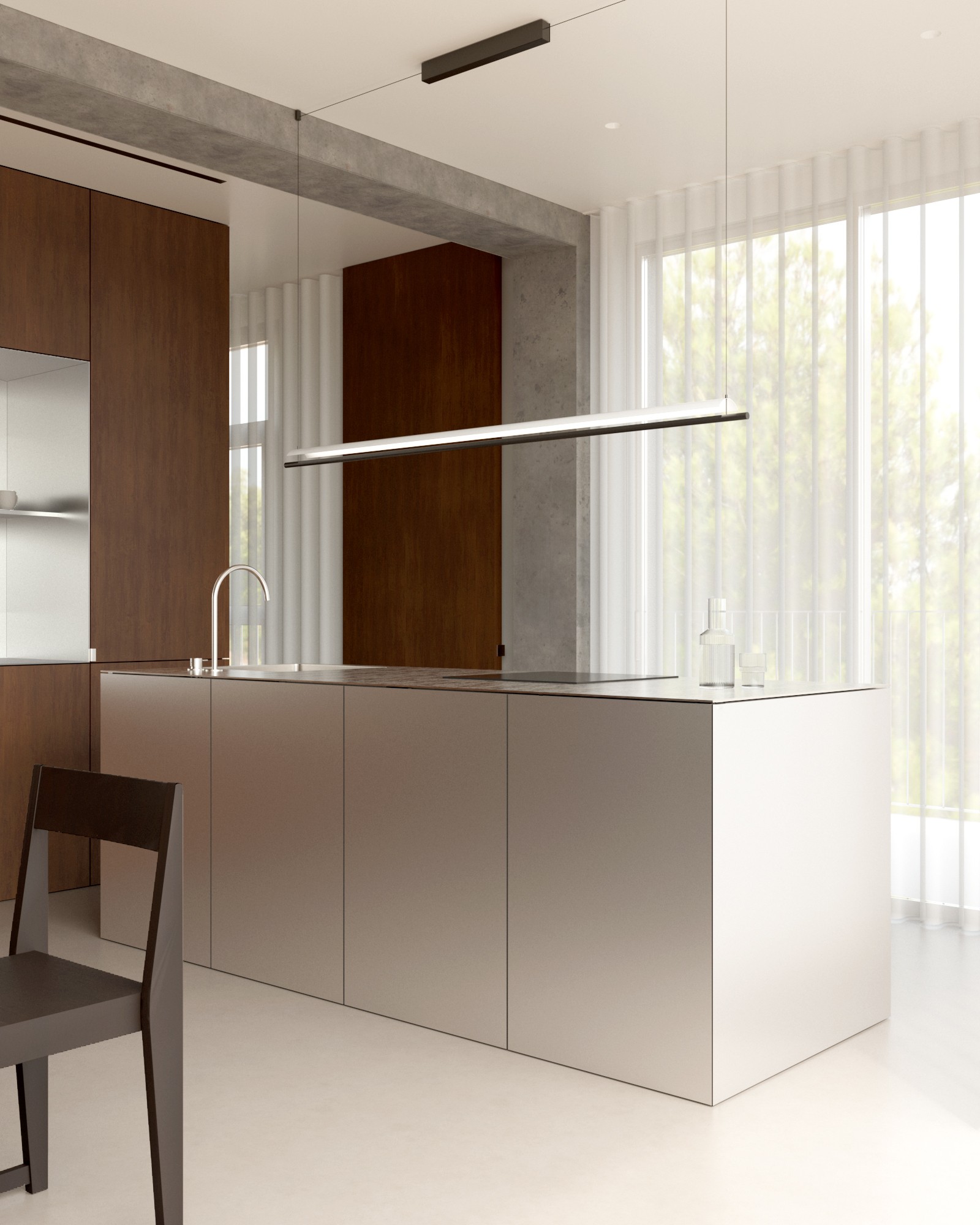 Designed in timber and stainless steel, this core combines warmth with precision, freeing up the façades so that light, views and ventilation can pass through the home without obstruction. The result is a bright, flexible and contemporary space.